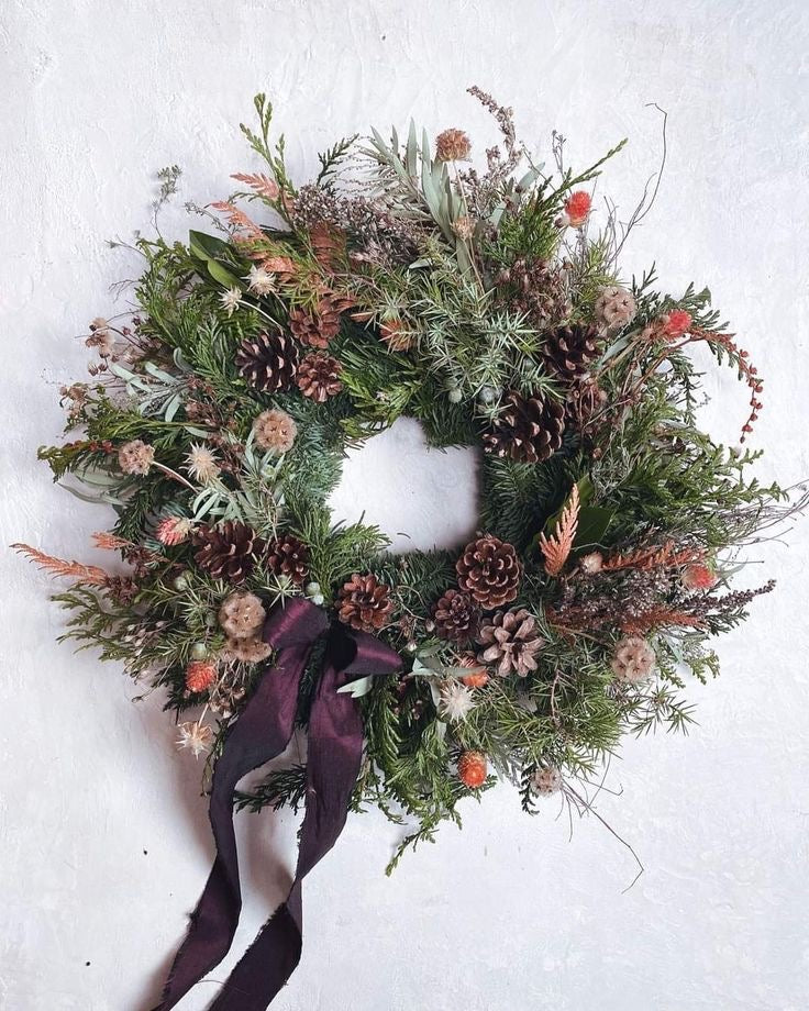 Elke krans is uniek (de foto’s zijn voorbeelden) en heeft een diameter van ongeveer 50 cm en bestaat uit wintergroen, besjes en andere kleurrijke natuurlijke materialen.
